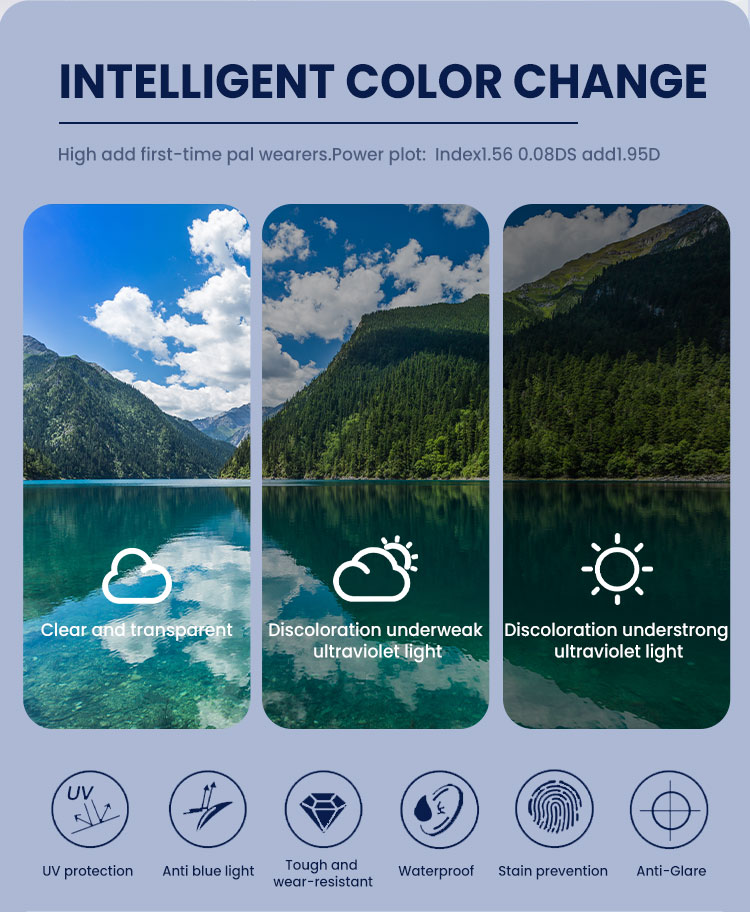 They come in single vision, bifocal, or progressive styles, so they work for nearsighted, farsighted users. Great for people who often go outside (e.g., commuters, hikers) or switch between indoor/outdoor spaces daily.